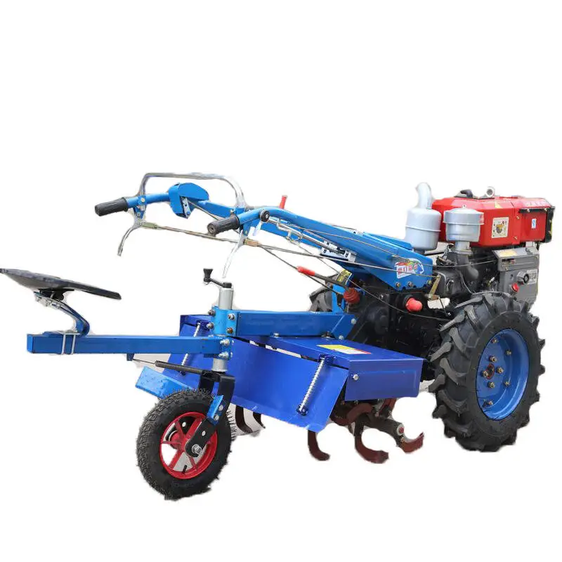 The walking tractor can drive by the power of the internal combustion engine through the transmission system, and the driving wheels that obtain driving torque then give the ground a small, backward horizontal force (tangential force) through the tire pattern and tire surface. This reaction force is to push the tractor forward Driving force for driving (also called position propulsion). The structure is simple, the power is small, and it is suitable for small arable land. The driver supports the handrail frame to control the operating mechanism, towing or driving the supporting agricultural tools to perform the operation.